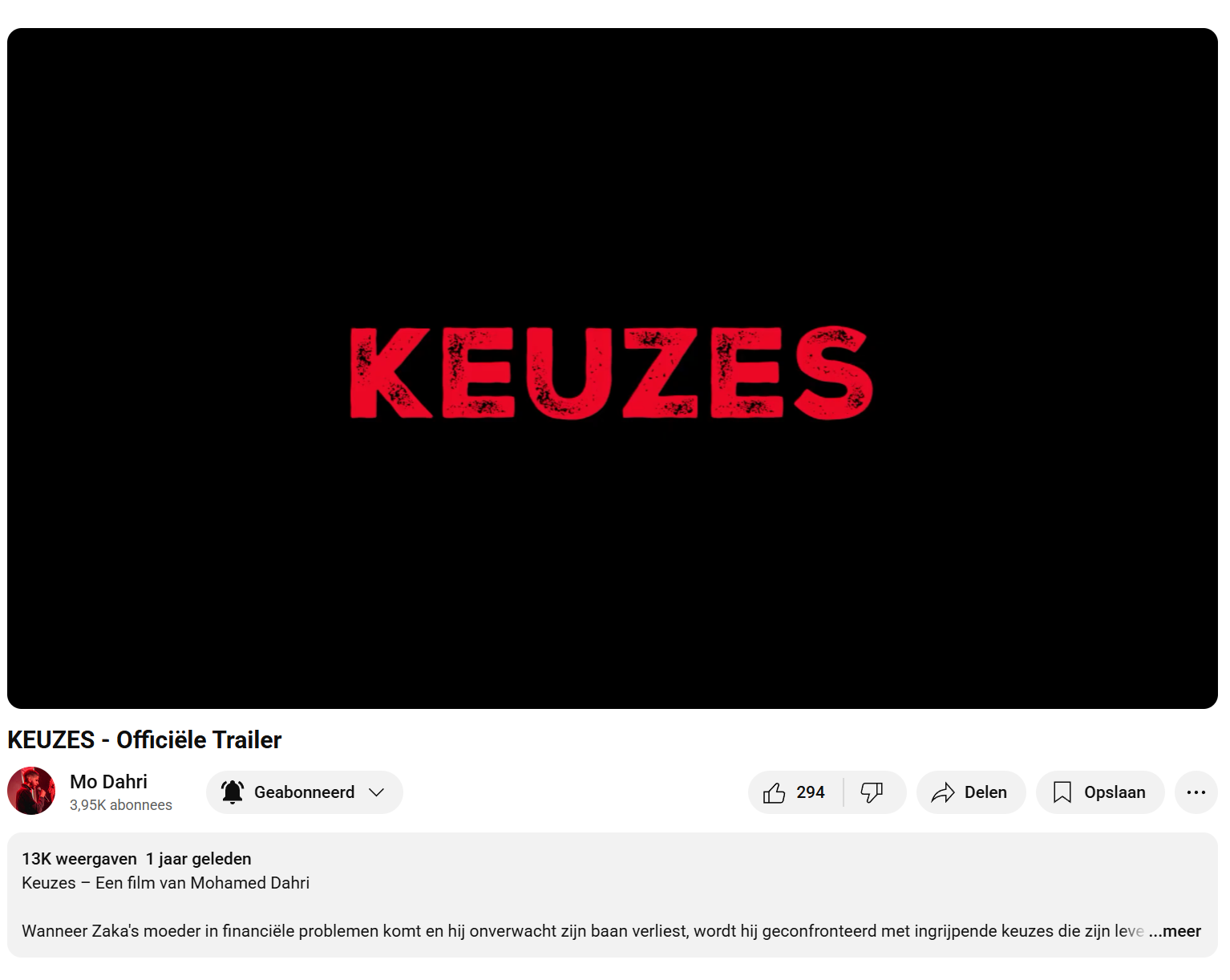 Trailer van Mohamed z'n film Keuzes die momenteel op 13.000 views zit
